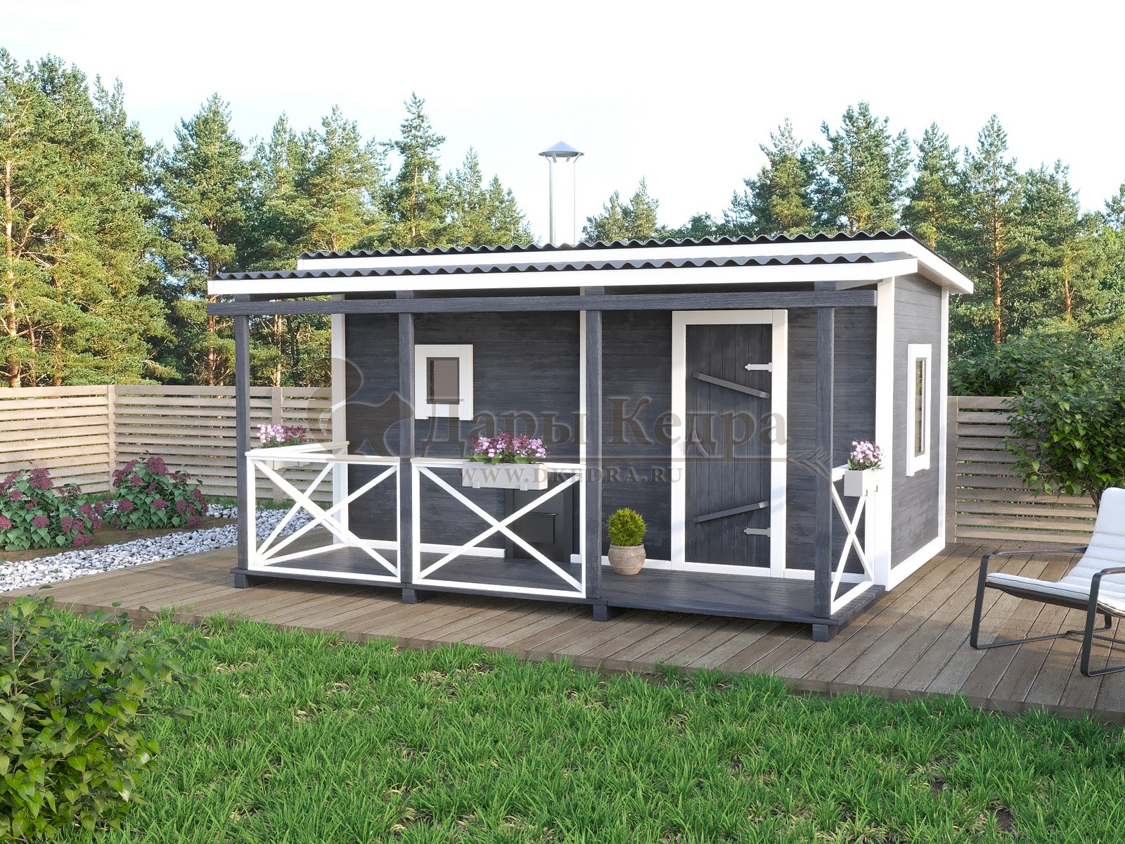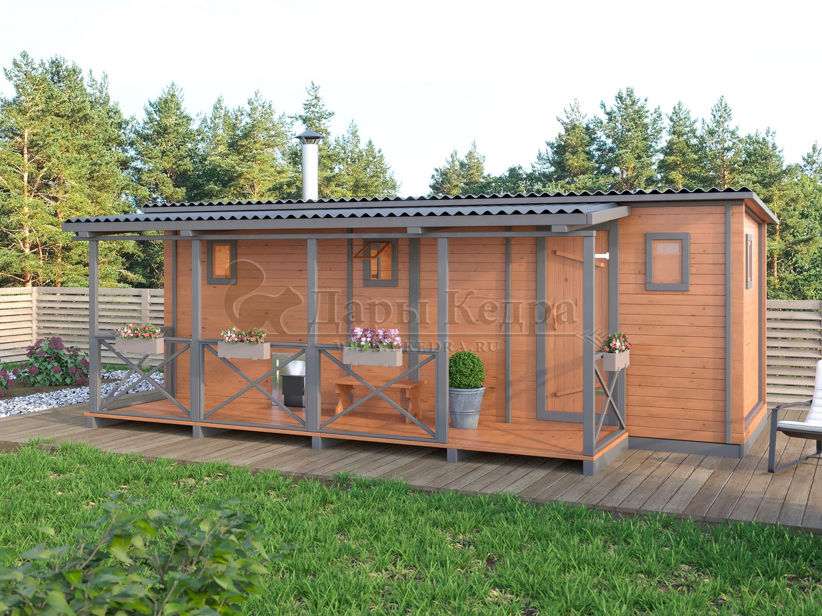 Каркасно-щитовая баня из кедра «Стандарт» с верандой