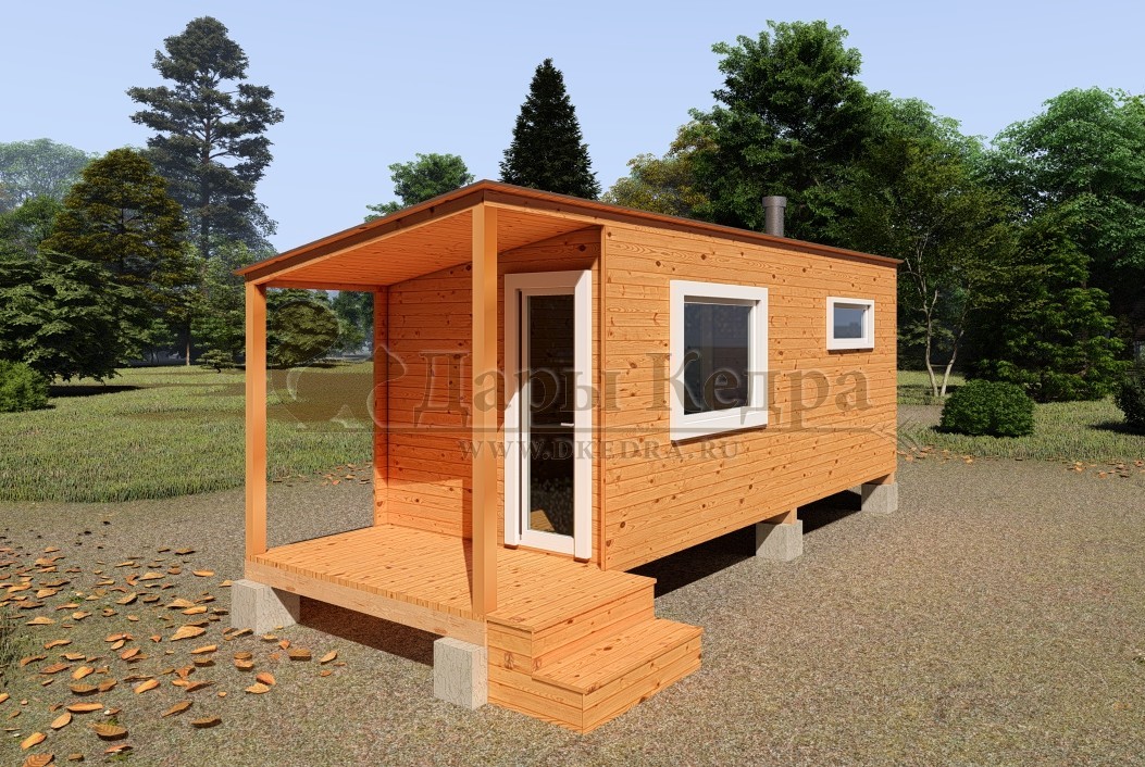 Каркасно-щитовая баня из кедра «Мини» с верандой