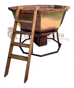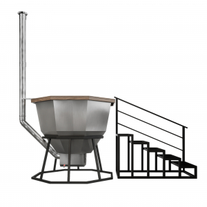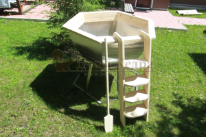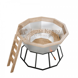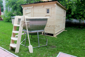 Банный чан на подставке изготовлен из пищевой стали. Представляет собой большую ёмкость в виде чаши, при нагревании которой можно париться на свежем воздухе. Чан установлен на устойчивую металлическую подставку и оборудован кедровым бортом, скамейками, подспинниками, трапом для ног и приставной лестницей. Нагревание банного чана происходит от обычного костра. Если оборудовать данную модель печью, то банные процедуры можно принимать даже зимой.