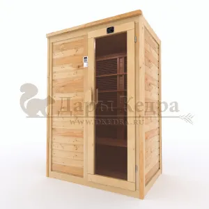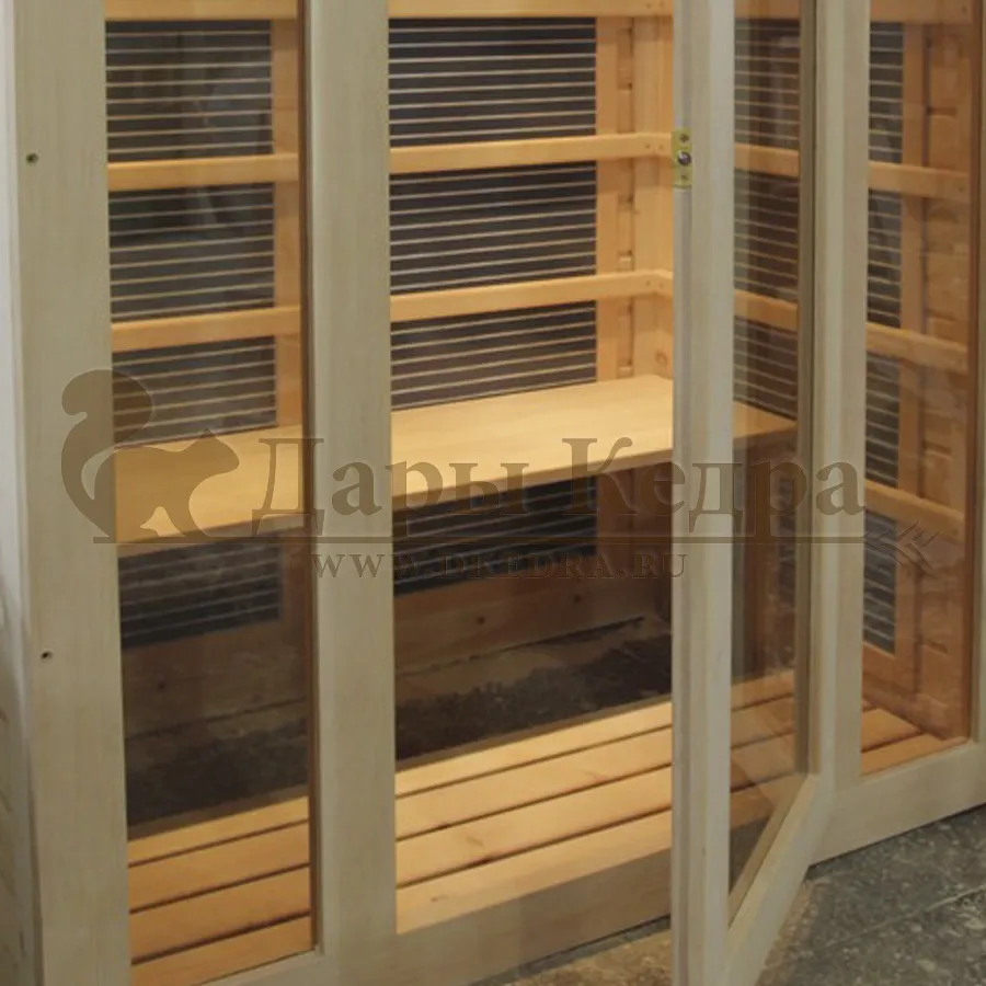 Это специально оборудованная кедровая кабина для прогрева тела человека сухим теплом. Воздух в таких парных не нагревается. Инфракрасные лучи воздействуют на тело, равномерно прогревая мышцы, суставы и органы. Карбоновые излучатели, встроенные в стены кабины, обладают мягким прогревом, что полностью исключает возможность ожога. Работает кабина за счет электричества. Двухместная инфракрасная сауна с карбоновыми излучателями подойдет как для домашнего использования, так и для коммерции.