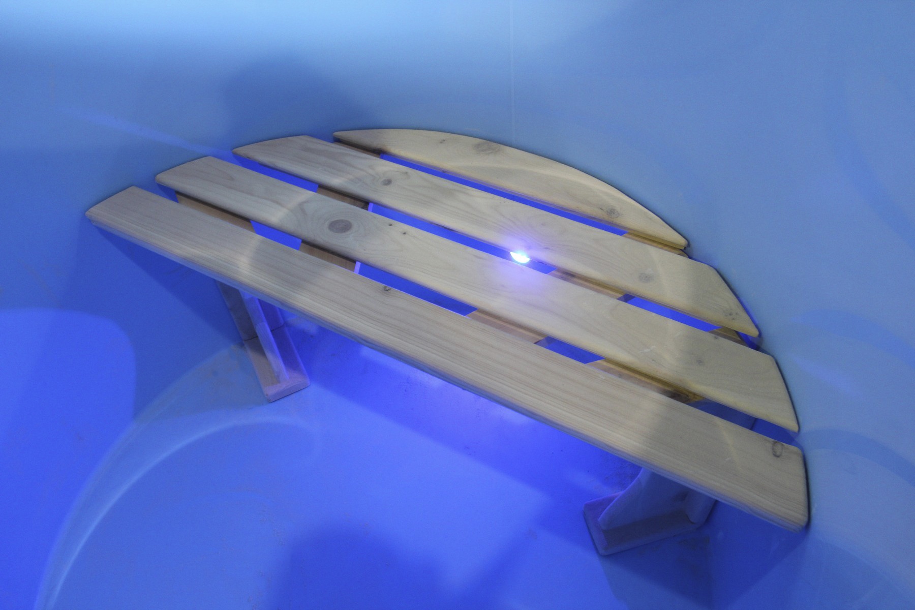 Это уличная подогреваемая купель с овальной внутренней чашей, которая изготовлена из современного прочного и термоустойчивого материала (композита). Форма чаши обеспечивает комфортную посадку во время принятия процедур. Для удобства пользования купель оборудована приставной лестницей. Подогрев воды осуществляется внешней печью с дымоходом. Композитная вставка придает купели красивый внешний вид, продлевает срок службы и облегчает уход за изделием.