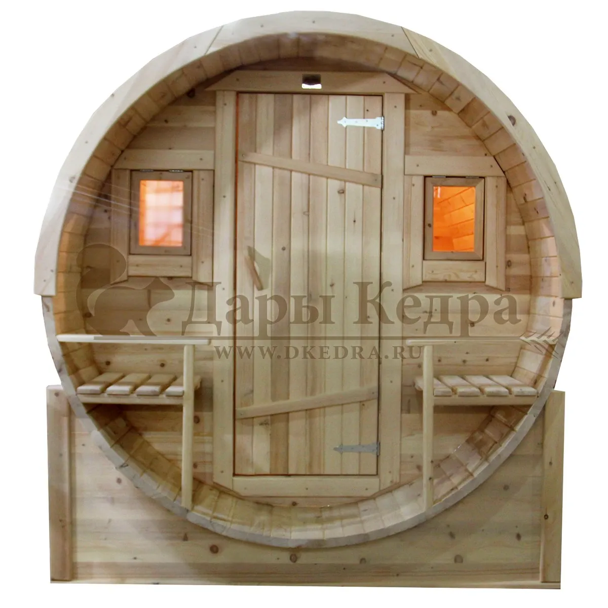 Овальная-Окта баня-бочка из кедра просторная и вместительная. Имеет два отделения: раздевалку, которую можно использовать как комнату отдыха, и парилку. Для удобства пользования раздевалка оснащена лавочкой, полкой и вешалкой из кедра. В парильном отделении располагается печь и двухуровневый открытый полок. Для установки такой модели не требуется полноценный фундамент, поэтому при необходимости ее можно перенести на другое место. Так же баню-бочку можно укомплектовать верандой со скамейками, козырьком и печью с внешней загрузкой, благодаря которой весь мусор после топки останется на улице.