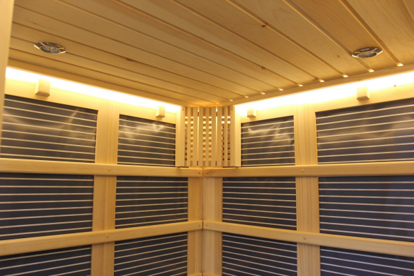 Трёхместная угловая инфракрасная сауна кабина из кедра с карбоновыми излучателями