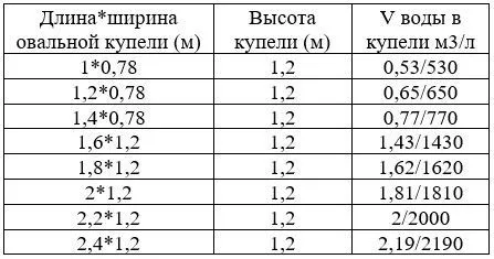 При ширине изделия 0,78 м заполняемость будет около 0,5-1 тонны. Вместимость небольшой купели - 1-2 человека. При длине изделия от 1,6 м вместимость составит 2-4 человека.